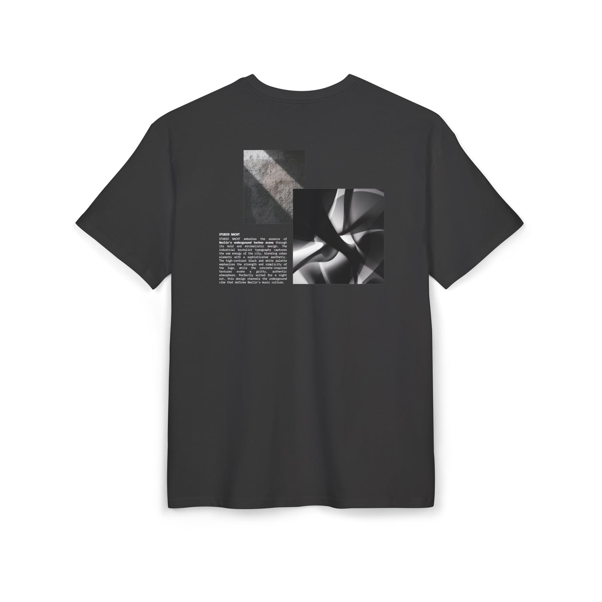 NACHT 01 — Unisex Oversized Tee A deliberately understated heavyweight in 7 oz cotton, engineered for those who value substance over statement. The generously cut silhouette with dropped shoulders creates an effortless drape that improves with wear, while the dense fabric provides an ideal canvas for printed details. Restrained graphic elements on the back—layered textures paired with minimal typography—establish visual interest through restraint rather than prominence. Versatile enough to anchor layered outfits or stand alone, this piece rewards considered dressing. Built to endure, it maintains its structure through repeated wear and integrates seamlessly into a refined, intentional wardrobe.