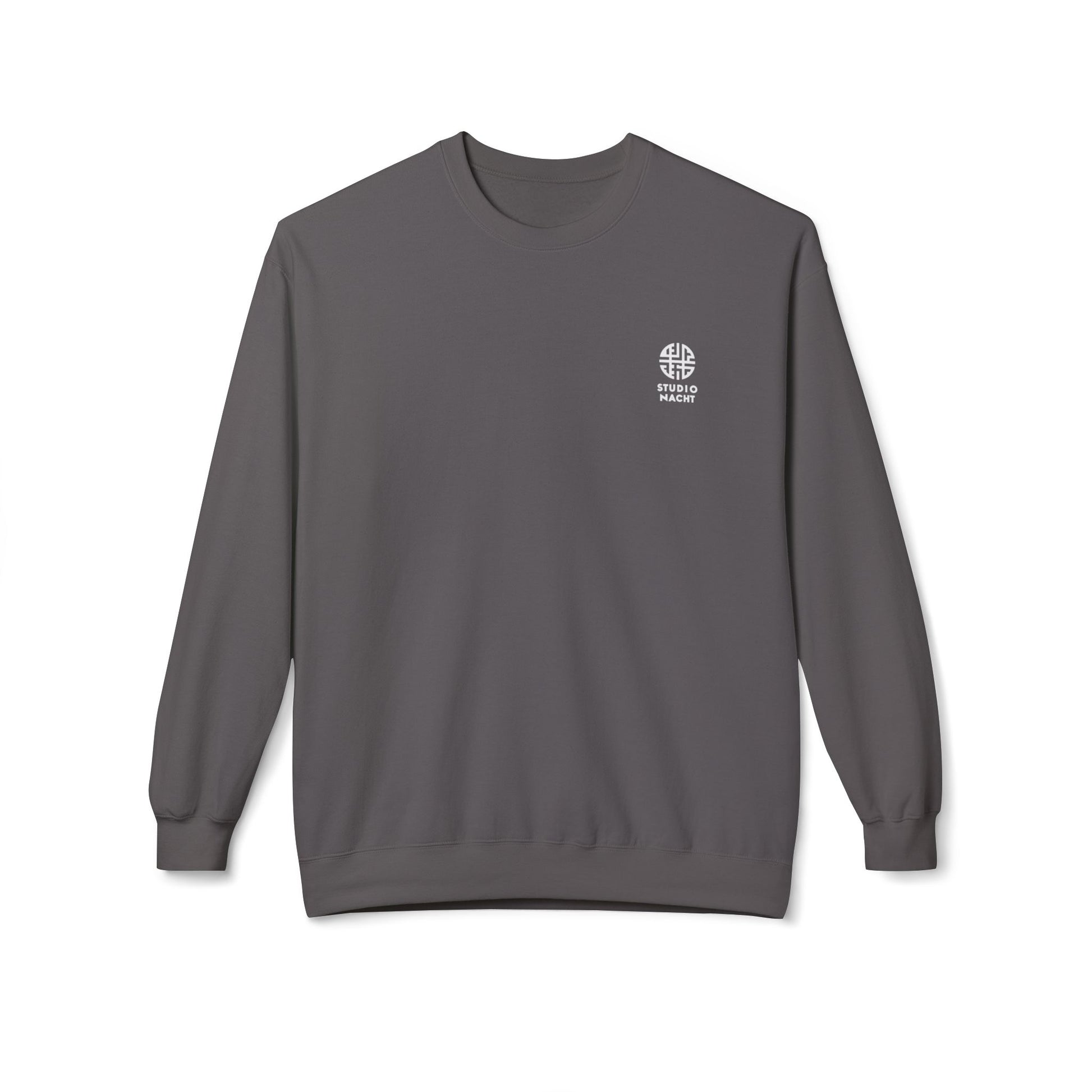 Crafted for late-night studio sessions, the Unisex SIGNAL CREW Night System is a midweight crewneck that balances comfort with intentional design. Featuring a relaxed dropped-shoulder fit and substantial 8.4 oz ring-spun cotton blend, this sweatshirt delivers warmth without bulk. The tubular construction eliminates side seams for a clean silhouette, while stretch-back ribbing at cuffs and hem maintains shape through movement. A subtle chest emblem pairs with a striking back graphic—geometric, synth-inspired typography reading "STUDIO NÄCHT"—capturing the aesthetic of analog electronics and nocturnal creativity. REACH-certified and finished with a tear-away label, it's engineered for layering and longevity. Machine wash cold; tumble dry low.